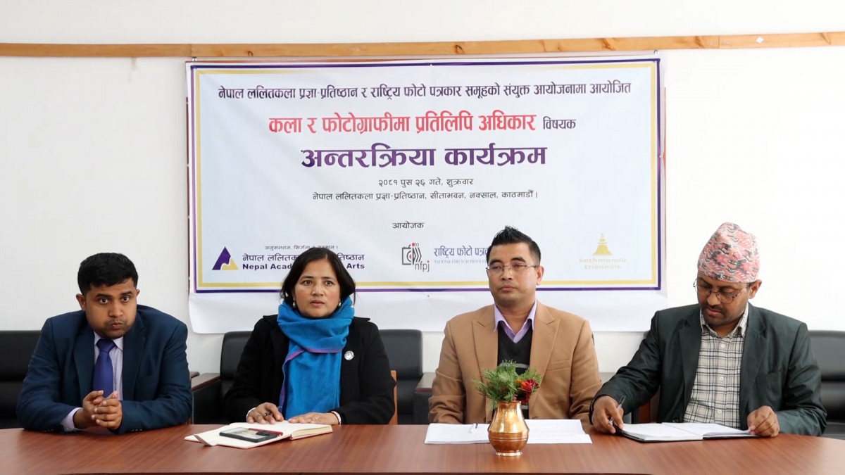 उहाँले भन्नुभयो, ‘फाटोग्राफर साथीहरुले हाम्रो सम्पती हामी आफैँले सुरक्षित गर्नुपर्छ । मैले खिचेको हो यो फोटो भन्नेमा हामी फोटो पत्रकारहरु नै पहिला सजग हुनुपर्छ । प्रविधिको प्रयोग गरेर हामीले फोटो आफ्नो हो भन्ने प्रमाणित गर्न सक्नुपर्छ ।’शुक्रवार काठमाडौंमा ललितकला प्रज्ञा प्रतिष्ठान र राष्ट्रिय फोटो पत्रकार समूहको आयोजनमा एकदिने अन्तरक्रिया कार्यक्रम भएको हो ।