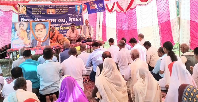 नवलपरासी, २९ असोजः धम्म दीक्षा दिवसका अवसरमा सरावल गाउँपालिका–७ स्थित भुजहवा पञ्चशिल बुद्ध विहारमा सोमबार कार्यक्रम आयोजना गरिएको छ ।